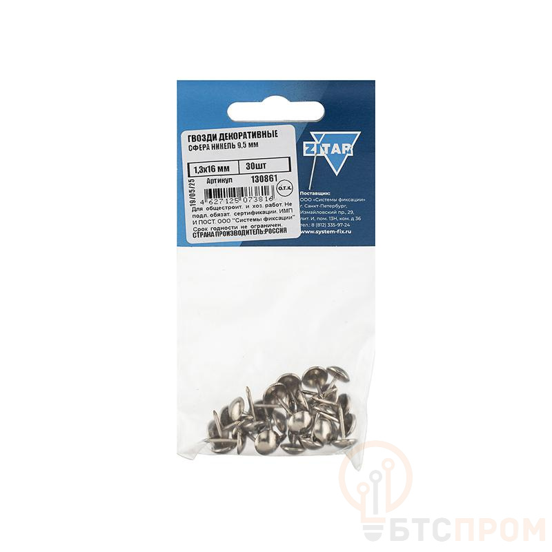 Декоративный гвоздь Сфера от бренда Tech-Krep/Zitar — это изысканный крепежный элемент, который сочетает в себе надежность и эстетическую привлекательность. Изделие имеет классическую круглую шляпку диаметром 9.5 мм, которая придает аккуратный и завершенный вид любым конструкциям. Стержень гвоздя размером 1.3х16 мм обеспечивает прочное соединение.