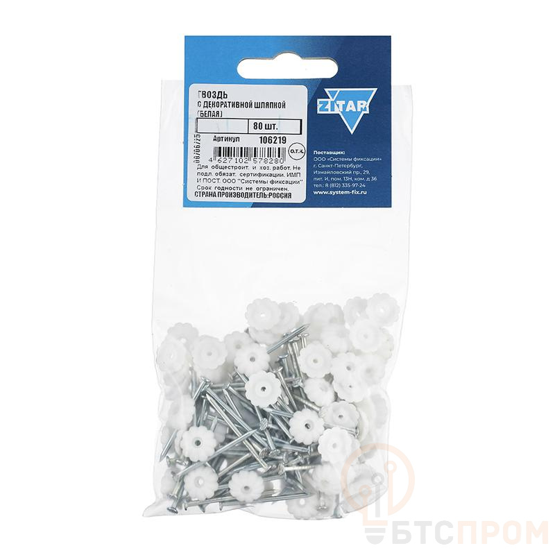 Гвоздь с декоративной шляпкой белого цвета от бренда Tech-Krep/Zitar — это идеальное решение для финишных и декоративных работ, где важна не только прочность, но и эстетика. Изделие отличается аккуратной большой шляпкой, которая после монтажа создает красивый видимый элемент, не требующий дополнительного скрытия.