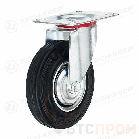 Колесо промышленное поворотное с резиновой шиной и роликоподшипником площадка d125 без тормоза оцинк. (уп.1шт) Tech-Krep/Zitar 127473