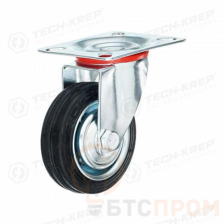 Колесо промышленное поворотное с резиновой шиной и роликоподшипником площадка d75 без тормоза оцинк.Tech-Krep/Zitar 148520