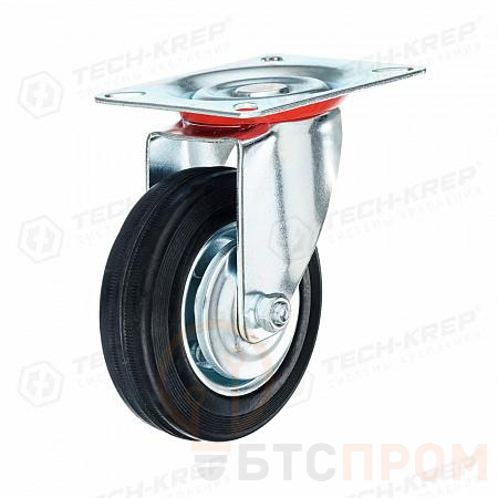 Колесо промышленное поворотное стальной обод с резиновой шиной и роликоподшипником площадка d100 без тормоза (уп.1шт) Tech-Krep/Zitar 151211