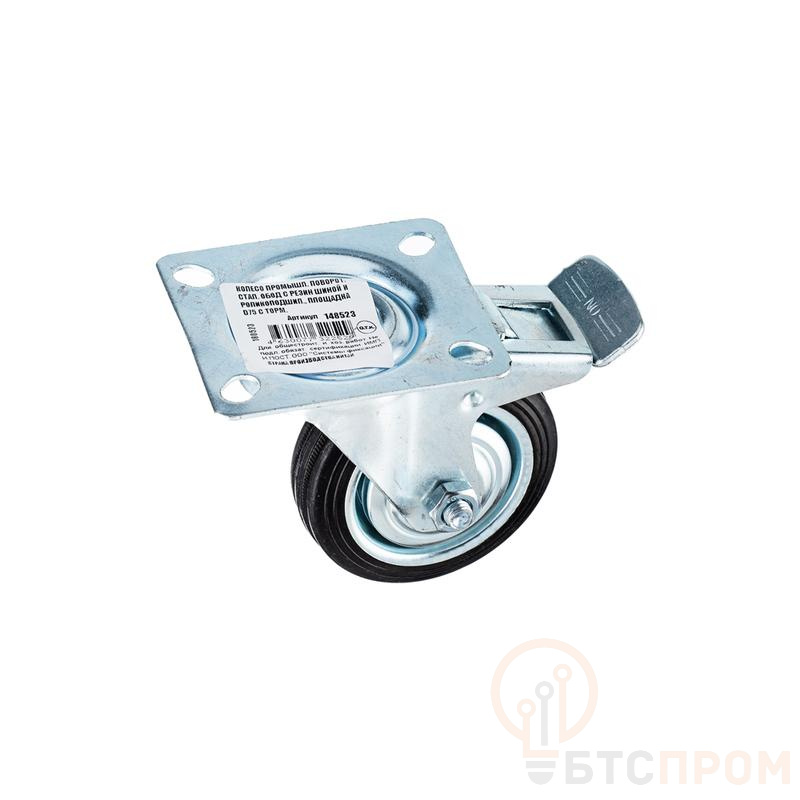 Колесо промышленное поворотное стальной обод с резиновой шиной и роликоподшипником площадка d75 Tech-Krep/Zitar 148523