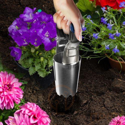 Посадочный конус Green Apple GASL10-084 – профессиональный инструмент настоящего садовода, без которого очень сложно обходиться любителям растений. Конус посадочный применяется для посадки цветочных луковиц или горшечных растений, которые имеют диаметр около 6 см, на грядки или клумбы. Сброс земли обратно в лунку производится с помощью нажатия кнопки. Инструмент обладает простой конструкцией, которая не подвержена деформации и прослужит длительное время. Эргономичная рукоятка способствует более комфортной работе. Такой инструмент значительно облегчит проведение земляных работ.