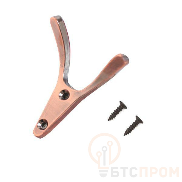 Крючок-вешалка двухрожковый. Материал - цинковый сплав. Крепеж в комплекте.