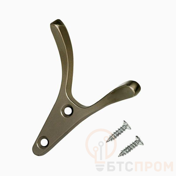 Крючок-вешалка двухрожковый. Материал - цинковый сплав. Крепеж в комплекте.