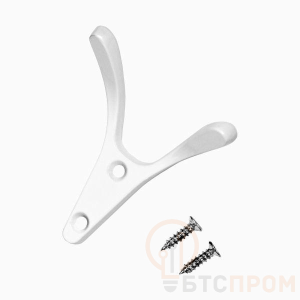 Крючок-вешалка двухрожковый. Материал - цинковый сплав. Крепеж в комплекте.