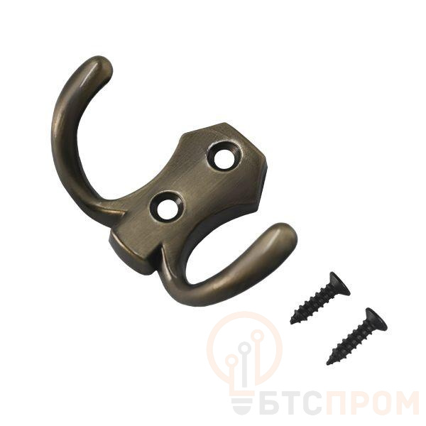 Крючок-вешалка двухрожковый. Материал - цинковый сплав. Крепеж в комплекте.