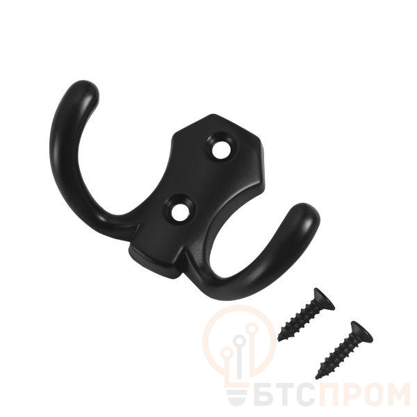 Крючок-вешалка двухрожковый. Материал - цинковый сплав. Крепеж в комплекте.