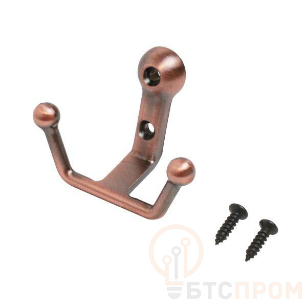 Крючок-вешалка двухрожковый. Материал - цинковый сплав. Крепеж в комплекте.