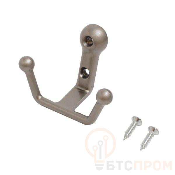 Крючок-вешалка двухрожковый. Материал - цинковый сплав. Крепеж в комплекте.