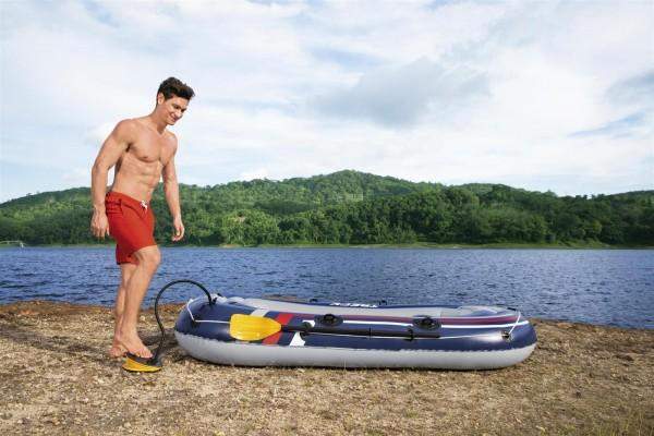 Лодка с надувным дном торговой марки BESTWAY — это незаменимый инвентарь для любителей активного отдыха, рыбаков и тех, кто хочет испытывать новые эмоции каждый день. Данная модель оснащена всеми необходимыми комплектующими для того, чтобы ваше пребывание на судне было максимально комфортным. Насос и вёсла входят в комплект, что позволит надуть изделие в любом месте и запросто добраться даже до отдалённого берега. Лодка изготовлена из прочного материала ПВХ, устойчивого к ультрафиолетовым излучениям, маслам, бензинам и прочим жидкостям, а значит, прослужит не один сезон. Технические характеристики Глубина (метр)0.7 Ширина (метр)0.3 Высота (метр)0.16 - Размер в надутом виде: 255 х 127 х 36 см. - Размер в сдутом виде: 262 х 145 см. - Максимальное количество человек: 2 взрослых + 1 ребенок - Максимальная нагрузка: 225 кг - Изготовлен из прочного ПВХ. - 3 воздушные камеры - Прочная ручка - Трос кольцевой с канатными каналами - Надувное дно для большего комфорта - Надувные подушки сиденья - Кольцо для буксировки - Встроенные уключины и удерживающий зажим - Клапаны для быстрого спуска воздуха - Предохранительные клапаны - У лодки имеются люверся крепления мотора для установки крепления мотора Bestway (№62069) и моторов (№65043, №65045). (Mотор и крепление мотора в комплект поставки не входят) В комплекте: - 1 пара весел 124 см №62015 - 1 ножной насос # 62023 - Самоклеящаяся заплатка для ремонта