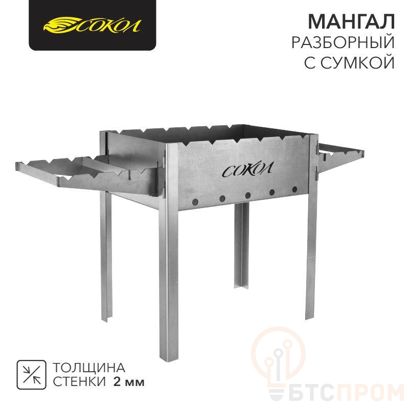 Компактный разборный мангал СОКОЛ изготовлен из стали увеличенной толщины (2 мм), поэтому не подвергается тепловым деформациям от углей и дров. Сборка и установка мангала производится вручную без использования специальных инструментов. На стенках жаровни размещены специальные прорези, которые позволяют разместить до 6 шампуров. Дополнительные держатели обеспечивают место для установки еще 8 шампуров. На боковых стенках предусмотрены отверстия для интенсивного горения. Общая высота ножек 505 мм оптимальна и удобна для приготовления шашлыков. Размеры жаровни 910х295х155 мм позволяют разместить шампуры и получить порцию блюда, рассчитанную на небольшую компанию. В разобранном виде мангал не занимает много места и легко помещается в багажник автомобиля. Поставляется в картонной коробке, дополненной удобной ручкой для транспортировки. В комплекте также поставляется сумка размером 500х20х350 мм для хранения и транспортировки мангала. Выполнена из ткани оксфорд с пропиткой ПВХ. Масса: 9,1 кг. Объем полезный, не менее: 20 л.