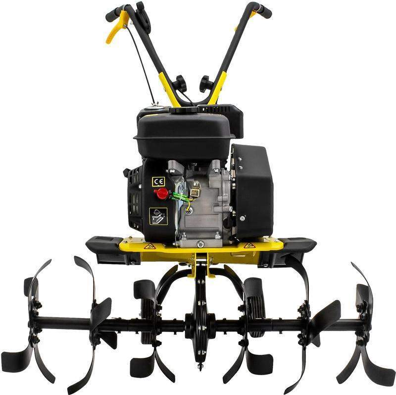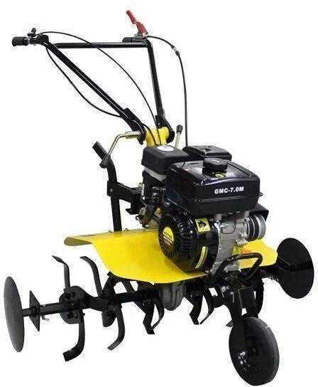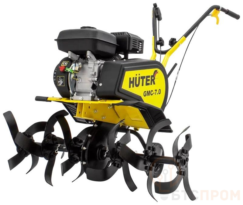 Тип двигателя 4Т одноцилиндровый, бензиновый Вес, кг 60 кг Мощность, л.с. 7 Бренд Huter Расход топлива, гр/кВт в час 375 Габариты упаковки 0.632 х 0.632 х 0.632 м Передачи 2 вперед / 1 назад Ширина обработки, см 100 Диаметр фрез, см 30 Объем топливного бака, л 3.6 Тип редуктора Шестерёнчато-цепной Ступица Шестигранник 23 мм Тип колес 4х8 Тип привода активной навески Ременный Класс Средней тяжести Пониженная первая передача Нет Разблокировка дифференциала Нет Корпус редуктора Алюминиевый Электростартер Нет Тип воздушного фильтра С масляной ванной Сельскохозяйственная машина HUTER МК-7000Р – неплохой помощник на приусадебном участке. Мощный бензиновый двигатель в 7 л.с. способен существенно облегчить обработку почвы. Закаленные фрезы, поставляемые в комплекте, способны справиться с любой почвой. Диаметр фрез - 30 см. Сошником можно быстро и легко отрегулировать глубину погружения, что позволяет подстроить аппарат под конкретный вид почвы. Рабочая ширина обработки составляет 100 см. Датчик уровня масла предохраняет от поломок двигателя, если масла станет слишком мало. Поршневая группа хромирована и усилена, что повышает ее надежность. Есть 3 передачи – 2 передних и 1 задняя, которая облегчает извлечение мотоблока из почвы. Шестеренчатый редуктор в масляной ванне имеет повышенную надежность. Корпус редуктора алюминиевый. Машина имеет ременной привод, вынос шкива адаптирован к российскому навесному оборудованию. СХМ оснащена широкими крыльями, которые надежно защищают оператора от попадания в него предметов из рабочей зоны.