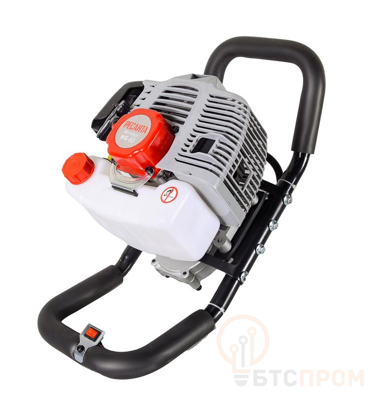 Мотобур Ресанта МБ-52 способен стать надежным помощником на стройке, приусадебном участке или на зимней рыбалке. С его помощью легко монтировать сваи для зданий, установить заборные столбы, поставить любую конструкцию, требующую заглубления в почву, можно быстро просверлить лунки даже в толстом льду. Ресанта МБ-52 имеет одноцилиндровый двухтактный двигатель объемом 52 см? и мощностью в 2 кВт. Этого достаточно для создания лунок глубиной до 2 м и шириной до 300 мм. Конструкция мотобура представляет собой двигатель и топливный бак, помещенные в раму. Для удобства использования к раме крепят ручки. Посредством редуктора на выходной вал подается крутящий момент. Прикрепленный к нему шнек проделывает лунки. Есть шнеки различных диаметров для грунта и для льда. Шнек не входит в комплект, его нужно приобретать отдельно. То же касается и удлинителя. Особенности модели Ресанта МБ-52: Устройство устойчиво к воздействию низких температур. Система управления мотором размещена на рукоятке. Система легкого старта позволяет быстро и просто запустить двигатель. Топливный бак объемом 1,25 л. Устройство работает на смеси бензина и моторного масла для двухтактных двигателей. Прорезиненные накладки на ручки не только обеспечивают надежный хват, но и выполняют роль антивибрационной вставки. Основные характеристики: Бренд Ресанта Допустимые типы шнека Металлический для грунта или льда Карбюратор Диафрагменный Максимальные обороты, об/мин 9000±500 Максимальный диаметр шнека, мм 300 Мощность, кВт 2 Обороты холостого хода, об/мин 3000±300 Объём двигателя, см? 52 Объем топливного бака, л 1,25 Габариты упаковки 0.38 ? 0.38 ? 0.38 м Посадочный диаметр, мм 20 Тип двигателя Одноцилиндровый, двухтактный, безиновый двигатель с воздушным охлаждением Топливо Смесь бензина (АИ 92) и масла для двухтактных двигателей в соотношении 40:1 Вес, кг 9.7 кг Зажигание электронное (CDI)