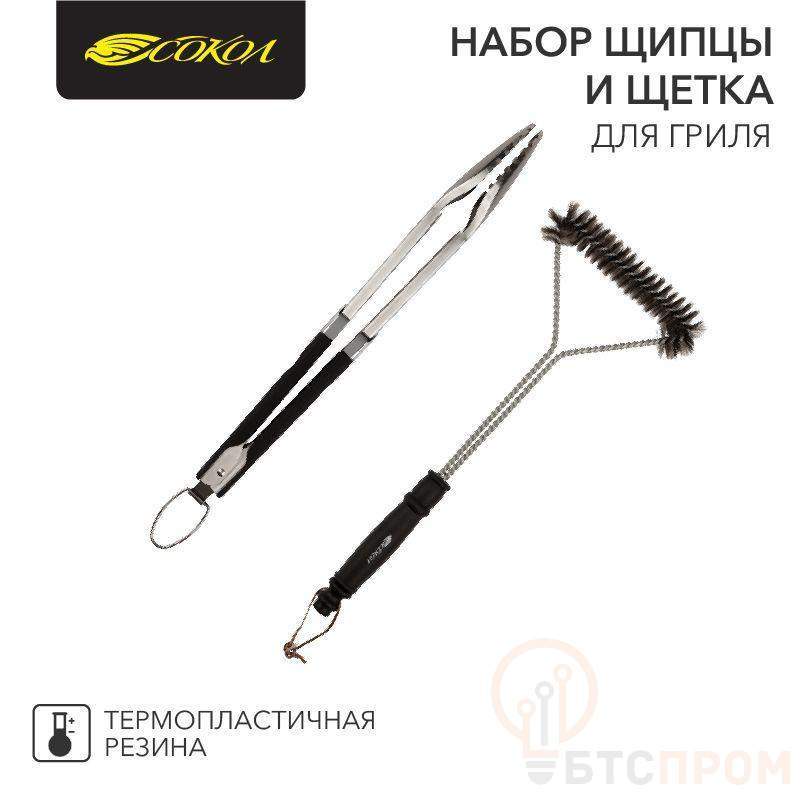 Набор для гриля серии Комфорт состоит из 2-х предметов: щипцов (440x50x1 мм) и щетки (430x170 мм). Длинные рукоятки аксессуаров из термопластичной резины позволяют перемещать продукты на решетке на безопасном расстоянии от жара, предотвращая ожоги и травмы. Благодаря специальной конструкции, щипцы помогают переместить еду, не нарушив ее форму, тем самым сохраняют эстетичный вид для подачи блюда. Жесткая металлическая щетина щетки эффективно удаляет остатки пригоревшей пищи и другие сильные загрязнения. Способна вычищать мелкий сор и грязь даже из труднодоступных мест. Щетка подходит для решеток из различных материалов: нержавеющей стали, чугуна, хрома или фарфоровой эмали. Аксессуары выполнены из прочной и экологичной нержавеющей стали: выдерживают большие перепады температур, устойчивы к коррозии.