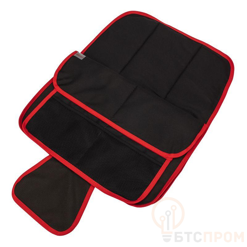 Накидка с высокой спинкой изготовлена специально для подложки под детское автокресло. Используется для защиты заднего сидения от повреждений и служит барьером между детскими ножками и сиденьем, предотвращая появление царапин или загрязнений на его поверхности. Накидка изготовлена из прочного и легко моющегося полиэстера. Внутри накидки находится подложка из вспененного полиэтилена, которая защищает тканевую или кожаную обивку сидений от деформации (замятия) и различного рода загрязнений. Накидка имеет универсальное крепление – липучку, благодаря чему легко фиксируется на сидении. В передней части накидки расположены карманы для мелких предметов и различных мелочей, которые могут понадобиться во время поездки. Вы сможете разместить в них игрушки, бутылочку с водой, салфетки или другие предметы.