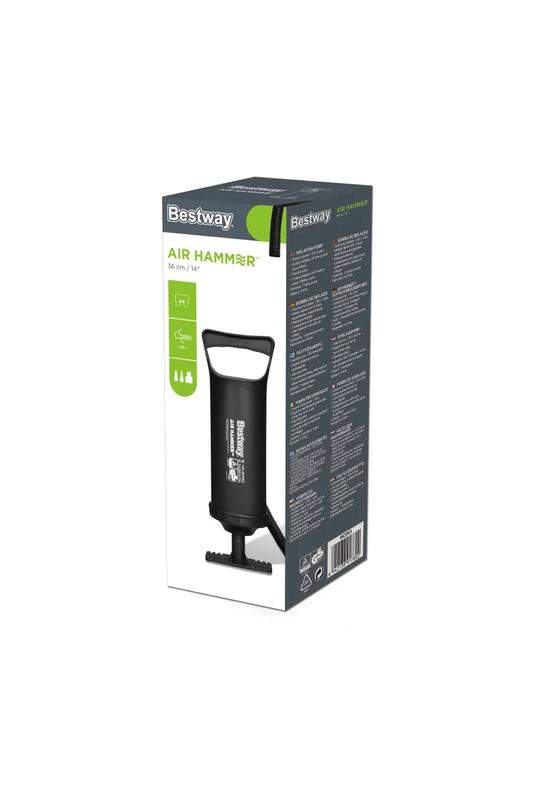Ручной насос Bestway для накачивания надувных изделий. Обладает системой двойного действия: накачивает надувные изделия как при прямом, так и обратном ходе поршня. В комплекте с насосом идет гибкий шланг и 3 насадки для практически всех видов надувных изделий. Насос имеет удобный упор для ног. Подходит ко всем надувным изделиям Bestway и Intex. Характеристики Объём воздушной камеры: 2х910 куб. см Высота насоса: 36 см Гибкий шланг-удлинитель; Насадки-переходники - 3 шт. Вес с упаковкой, кг: 0.5 Размер упаковки, см 36 x 13 x 11