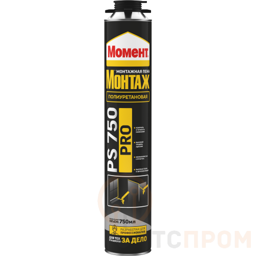 Пена монтажная «Монтаж PRO PS750» от бренда Момент – это профессиональный однокомпонентный полиуретановый герметик объемом 750 мл. Продукт обеспечивает высококачественную изоляцию и прочное заполнение швов, стыков и пустот.