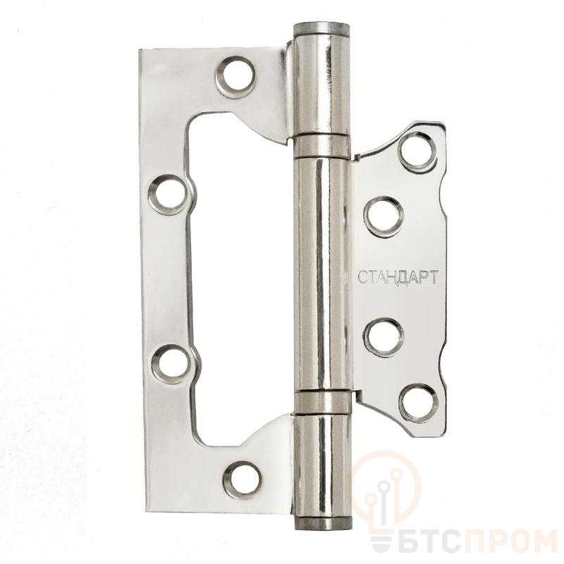 СТАНДАРТ 100х63х2мм 2BB CP хром Петля накладная без врезки 1 шт (100,20), , Петля дверная универсальная, без врезки. Предназначена для установки на левые и правые двери. Материал - сталь, гальваническое покрытие. Размер петли - 100х63х2 мм. 2 противоскрипных кольца, плоский колпачок. Упаковка - европакет.