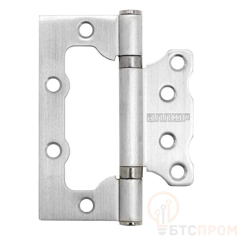 АЛЛЮР 100х75 2BB SCP БЛИСТЕР 2,5мм мат.хром Петля накладная без врезки 2 шт (50,25), , Петля дверная универсальная, без врезки. Предназначена для установки на левые и правые двери. Материал - сталь, гальваническое покрытие. Размер петли - 100х75х2,5 мм. 2 подшипника, плоский колпачок.