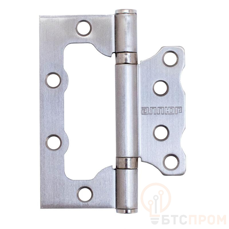 АЛЛЮР 100х75 2BB SNP БЛИСТЕР 2,5мм мат.никель Петля накладная без врезки 2 шт (50,25), , Петля дверная универсальная, без врезки. Предназначена для установки на левые и правые двери. Материал - сталь, гальваническое покрытие. Размер петли - 100х75х2,5 мм. 2 подшипника, плоский колпачок.