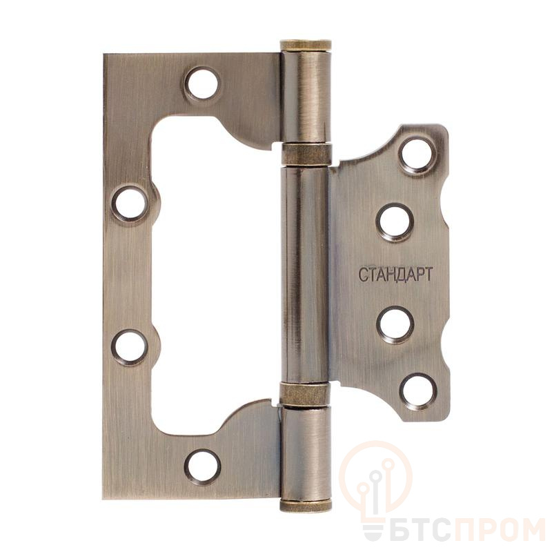 СТАНДАРТ 100х75х2,5мм 2BB AB бронза Петля накладная без врезки 1 шт (100,20), , Петля дверная универсальная, без врезки. Предназначена для установки на левые и правые двери. Материал - сталь, гальваническое покрытие. Размер петли - 100х75х2,5 мм. 2 противоскрипных кольца, плоский колпачок.