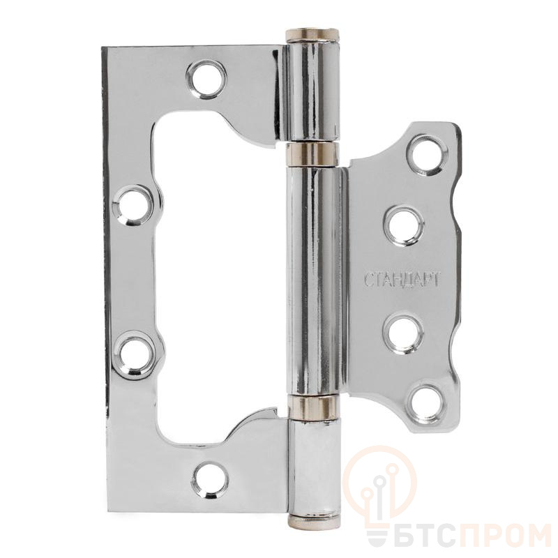 СТАНДАРТ 100х75х2,5мм 2BB CP хром Петля накладная без врезки 1 шт (100,20), , Петля дверная универсальная, без врезки. Предназначена для установки на левые и правые двери. Материал - сталь, гальваническое покрытие. Размер петли - 100х75х2,5 мм. 2 противоскрипных кольца, плоский колпачок.