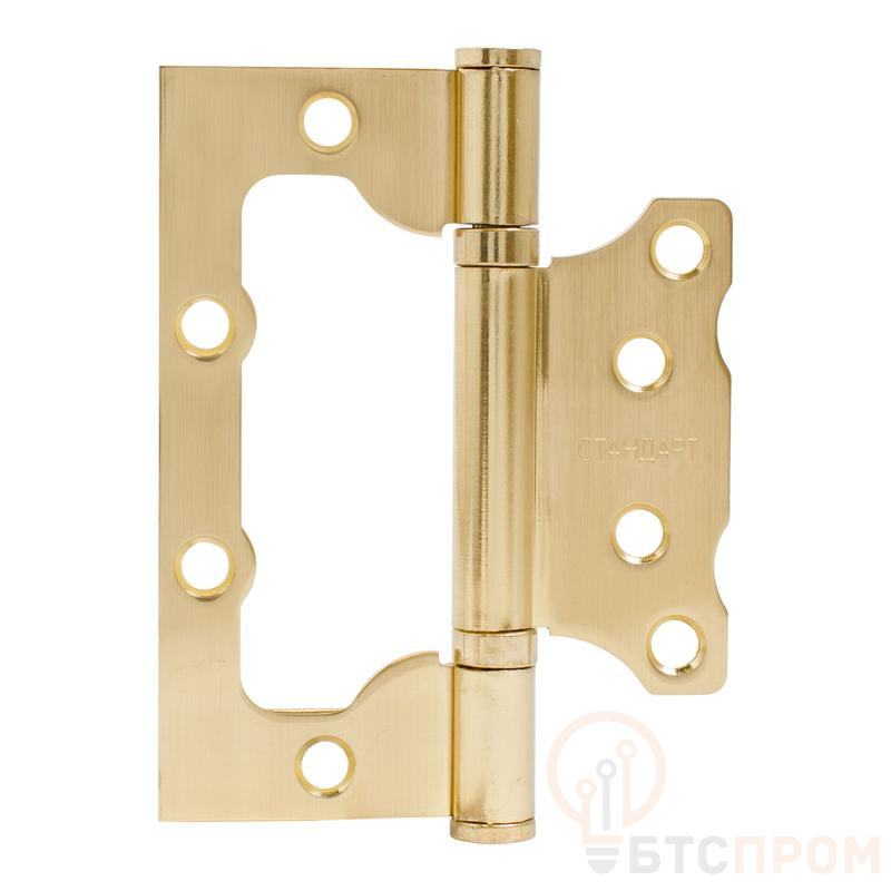 СТАНДАРТ 100х75х2,5мм 2BB SBP мат.латунь Петля накладная без врезки 1 шт (100,20), , Петля дверная универсальная, без врезки. Предназначена для установки на левые и правые двери. Материал - сталь, гальваническое покрытие. Размер петли - 100х75х2,5 мм. 2 противоскрипных кольца, плоский колпачок.