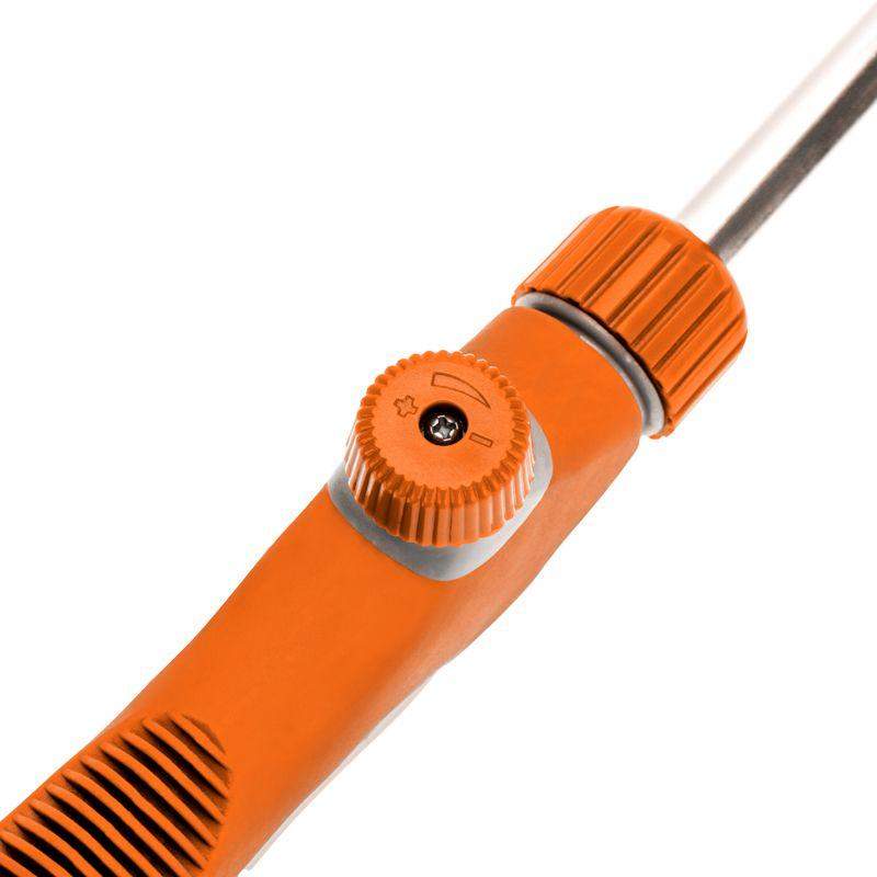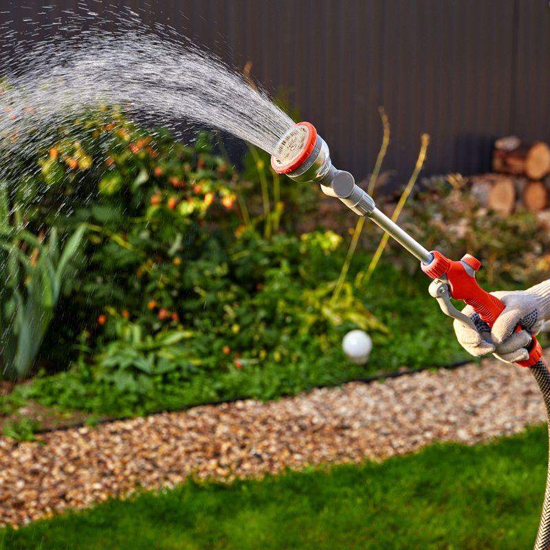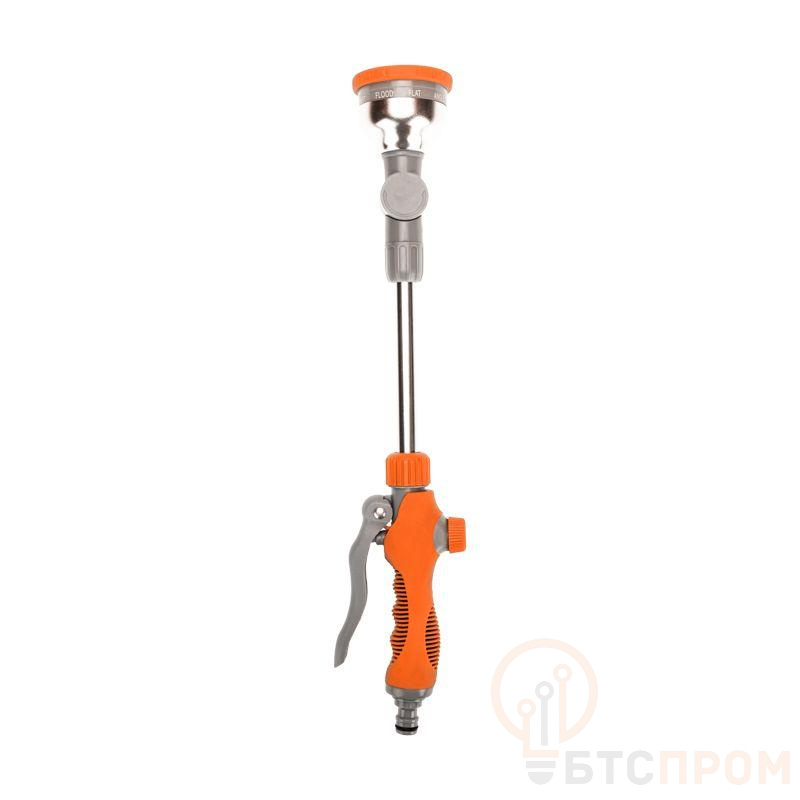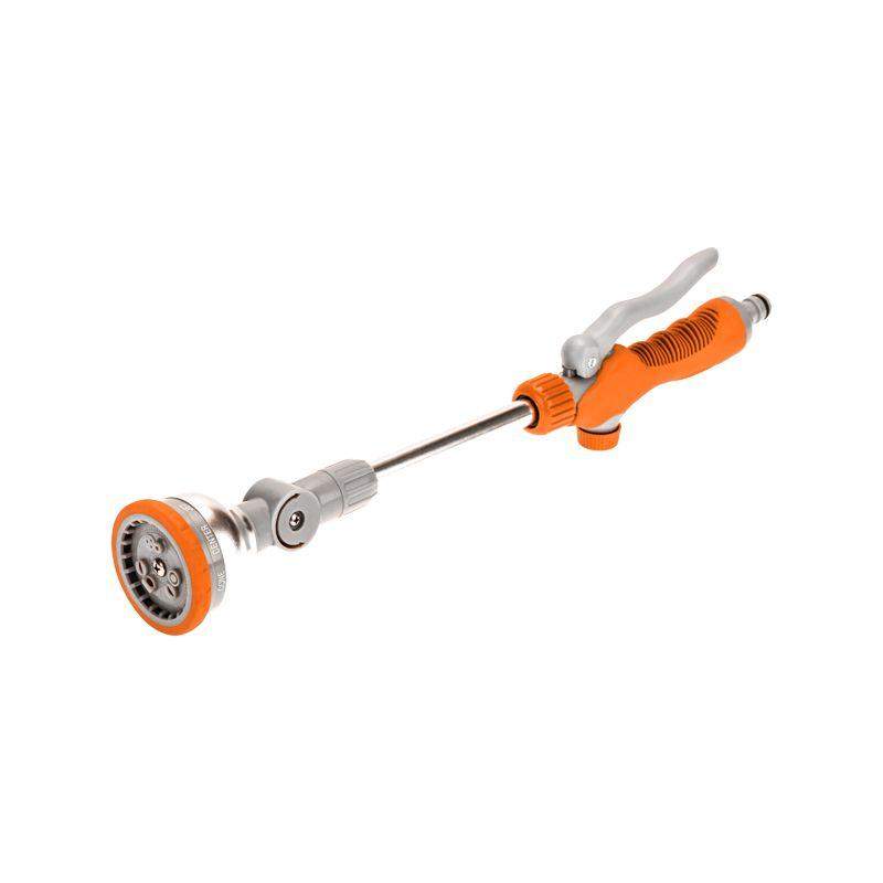 Распылитель представляет собой садовый аксессуар, предназначенный для полива, орошения и ухода за растениями. Удлиненная ручка обеспечивает удобство использования, позволяя дотянуться до труднодоступных мест и областей с минимальными усилиями. Это особенно полезно при обработке высоких растений. Курок на ручке позволяет с комфортом контролировать подачу воды. Благодаря наличию 9 различных режимов, которые регулируются поворотной головкой, вы можете выбрать оптимальный способ полива для каждого типа растений. Изделие надежно и герметично крепится к шлангу при помощи универсального соединителя, расположенного на конце пистолета.