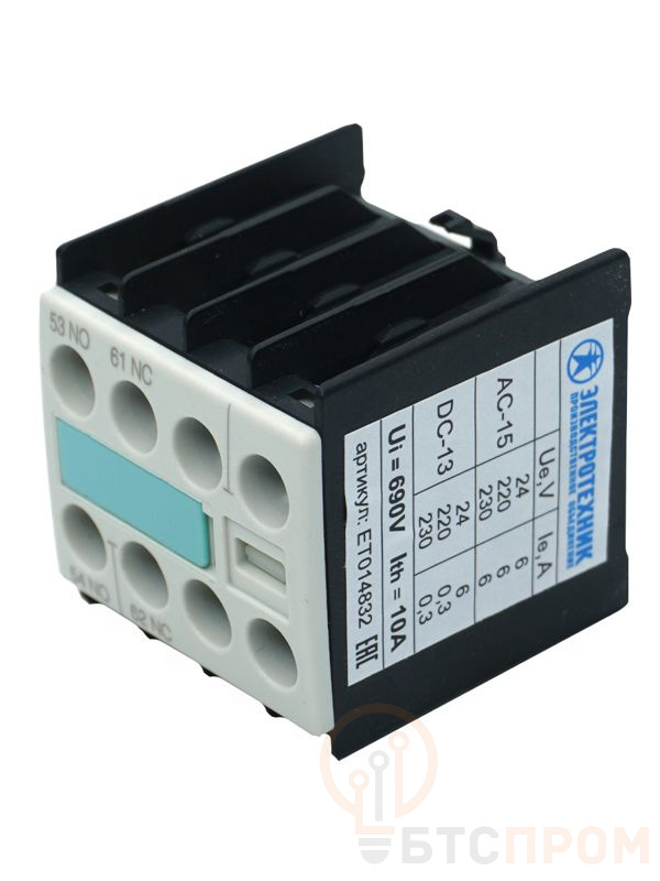 Блок-контакт 3RH1911-1FA11 1НО+1НЗ для контакторов типоразмера S00 фронтальный винт. клеммы IP20 Электротехник ET014832