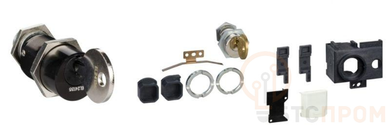 Блокировка поставляется отдельно. Устройство блокирует выключатель SystemePactACB1 в положении «отключен». Выключатель можно включить только тогда, когда ключ вставлен в замок. Эта блокировка может применяться для взаимной блокировки нескольких выключателей с одинаковыми замками и одним ключом: 3 замка 2 ключа