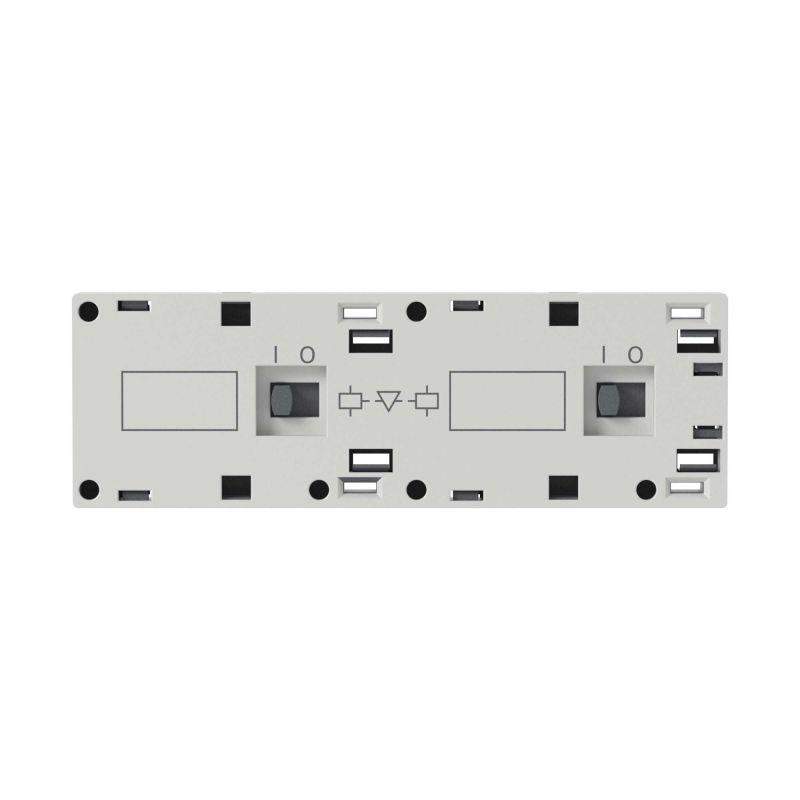 Фронтальная механическая блокировка DMCMI предназначена для реверсирования мини-контакторов. Блокировка предотвращает одновременное включение контакторов прямого и обратного хода. Модули вспомогательных контактов, ограничители перенапряжений и таймеры могут использоваться совместно с механической блокировкой.