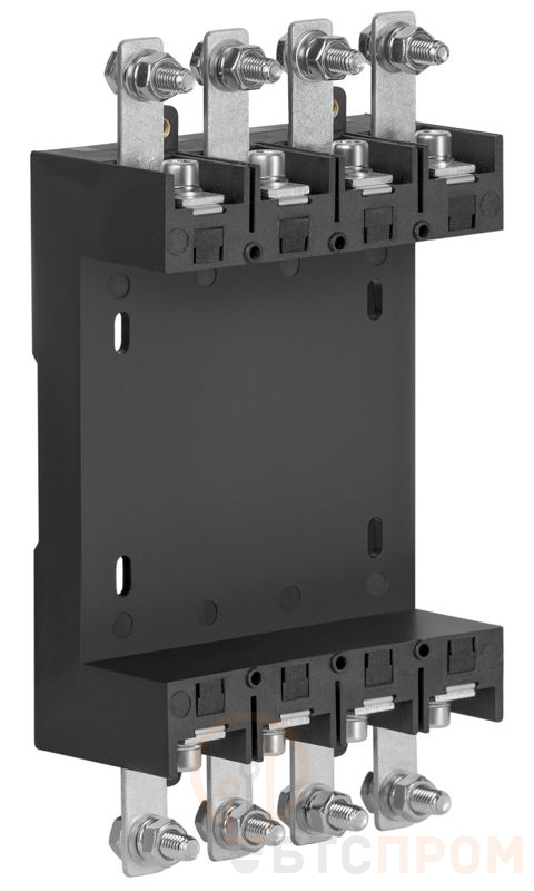 Основание рассчитано на контакторы с номинальным током до 63А и имеет переднее присоединение силовых и вспомогательных цепей, что упрощает процесс подключения проводников. Изготовленное из прочного самозатухающего пластика, основание обладает высокой устойчивостью к механическим воздействиям и соответствует требованиям электробезопасности.