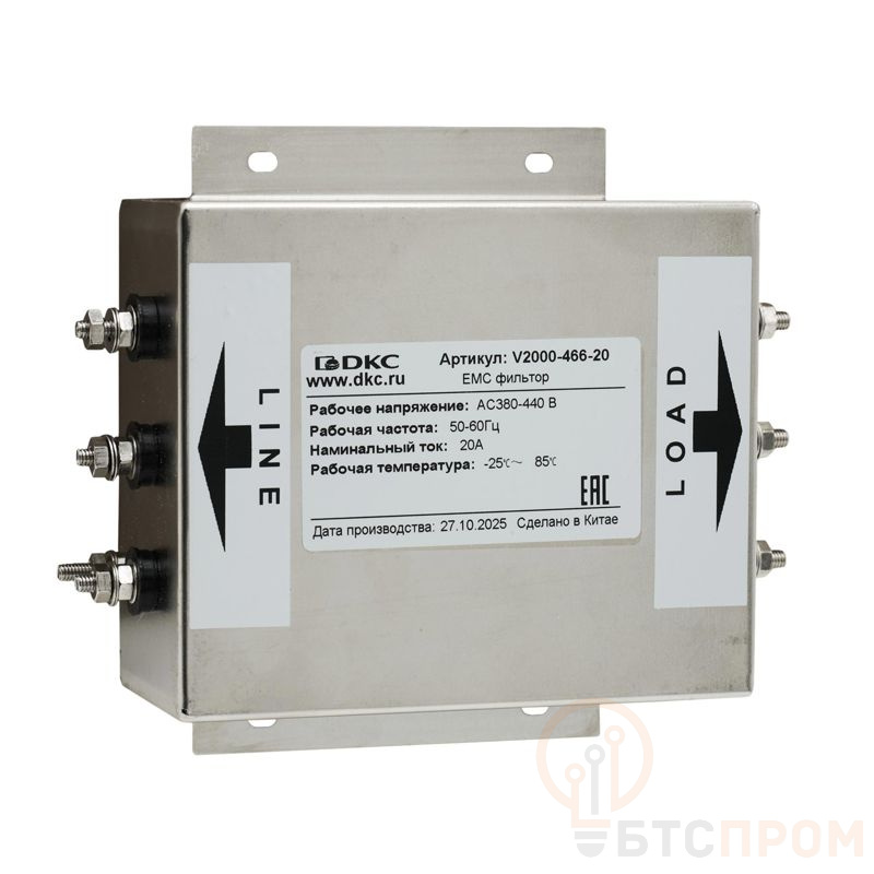Фильтр ЭМС DKC V2000-466-20 предназначен для эффективного подавления электромагнитных помех, создаваемых трехфазными частотными преобразователями. Он обеспечивает соответствие оборудования строгим нормам электромагнитной совместимости (ЭМС).