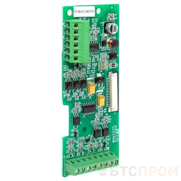 Карта расширения PD-150-ACC-ABZ-PG3 — это специализированный модуль для преобразователей частоты серии PRO-Drive от EKF. Модуль оснащен энкодерным входом ABZ с опорным сигналом и выходом импульсов PG, что обеспечивает высокоточный контроль скорости и положения вала двигателя.