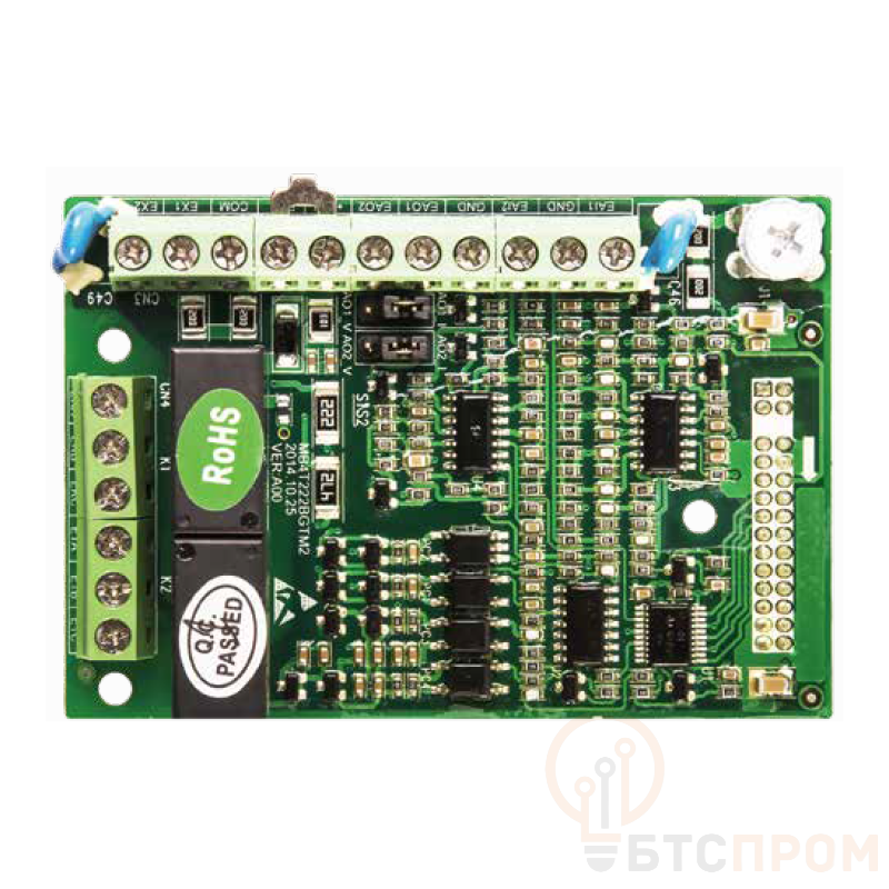 Плата расширения дискретных и аналоговых входов и выходов. Содержит два аналоговых входа подключения датчиков РТ100, два аналоговых выхода два релейных выхода.