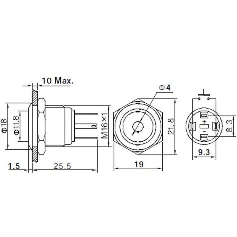 Индикатор металл O16 12В подсв/синяя LED предназначен для индикации состояния электрических цепей. Такие индикаторы устанавливаются на лицевых панелях управления электрооборудованием (в объектах энергоснабжения, измерительных приборах, блоках питания, легковых и грузовых автомобилях, и других местах) с рабочим напряжением не более 12В. Разнообразные цветовые варианты исполнения позволяют эффективно комплектовать панели управления. Изделие состоит из двух основных частей - лицевой части (головки) и контактной. Монтаж осуществляется без применения винтов на плоских панелях толщиной от 0.5мм до 5мм, с помощью гайки. Подключение контактов осуществляется с помощью пайки. Основные характеристики: Номинальное напряжение: 12В; Номинальный ток: 15mA; Цвет индикации: синий LED; Установочный диаметр: 16мм; Рабочая температура: от -25?..+55?; Допустимая влажность: до 85%, без выпадения конденсата. Преимуществами использования данного изделия является увеличенная яркость индикации за счет LED подсветки, быстрота и удобство монтажа.