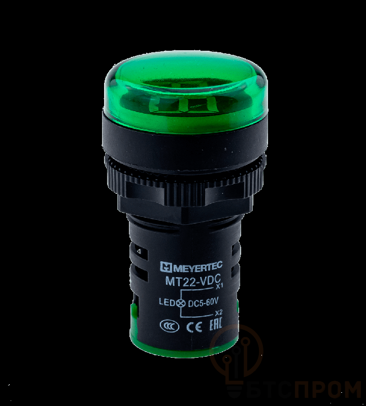 Основные характеристики: напряжение питания 5–60 В DC, зеленый цвет свечения, монтажное отверстие 22.5 мм, номинальный ток светодиода 10 мА. Устройство отличается высокой надежностью, защитой от переполюсовки и широким температурным диапазоном работы.