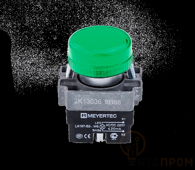 Лампа работает от напряжения 220В переменного и постоянного тока (AC/DC), что значительно расширяет возможности ее применения. Световой сигнал яркого зеленого цвета хорошо различим даже на большом расстоянии. Устройство монтируется на стандартную отверстие в панель или дверь шкафа управления с помощью резьбовой втулки.