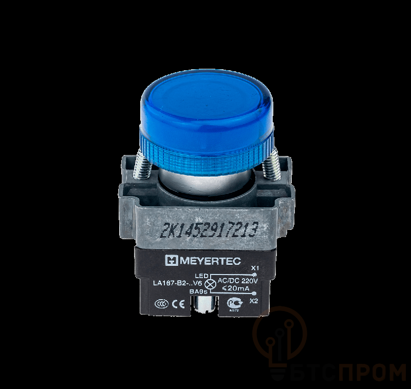 Ключевой особенностью данной лампы является ее совместимость с широким диапазоном напряжений: 220В переменного (AC) и постоянного (DC) тока. Синний цвет светодиодного индикатора обеспечивает четкую и хорошо заметную сигнализацию. Устройство монтируется на стандартную монтажную панель с диаметром отверстия 22.5 мм.