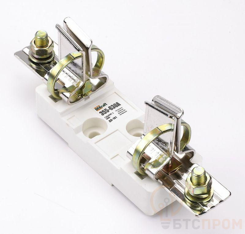 Держатель ножевого предохранителя серии ПН-101 Dekraft; тип 39; габарит 00; номинальный ток до 630 А. Предохранители ножевые применяются в однофазных и трехфазных сетях переменного тока, напряжением до 660 В, частотой 50 Гц. Держатель устойчив к механическим и термическим воздействиям, а также динамическим ударам при коротких замыканиях.