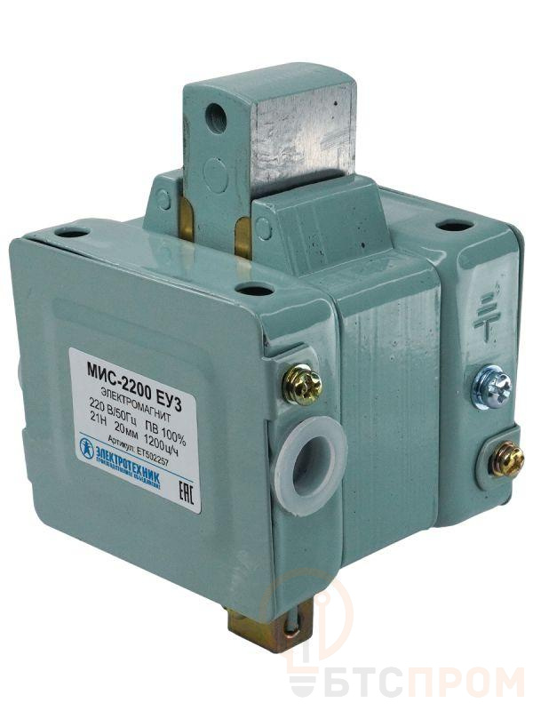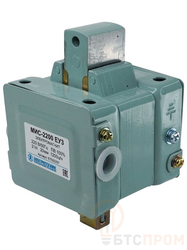 Электромагнит МИС-2200 ЕУ3 220В толкающее исполнение ПВ 100% IP20 с жесткими выводами Электротехник ET502257