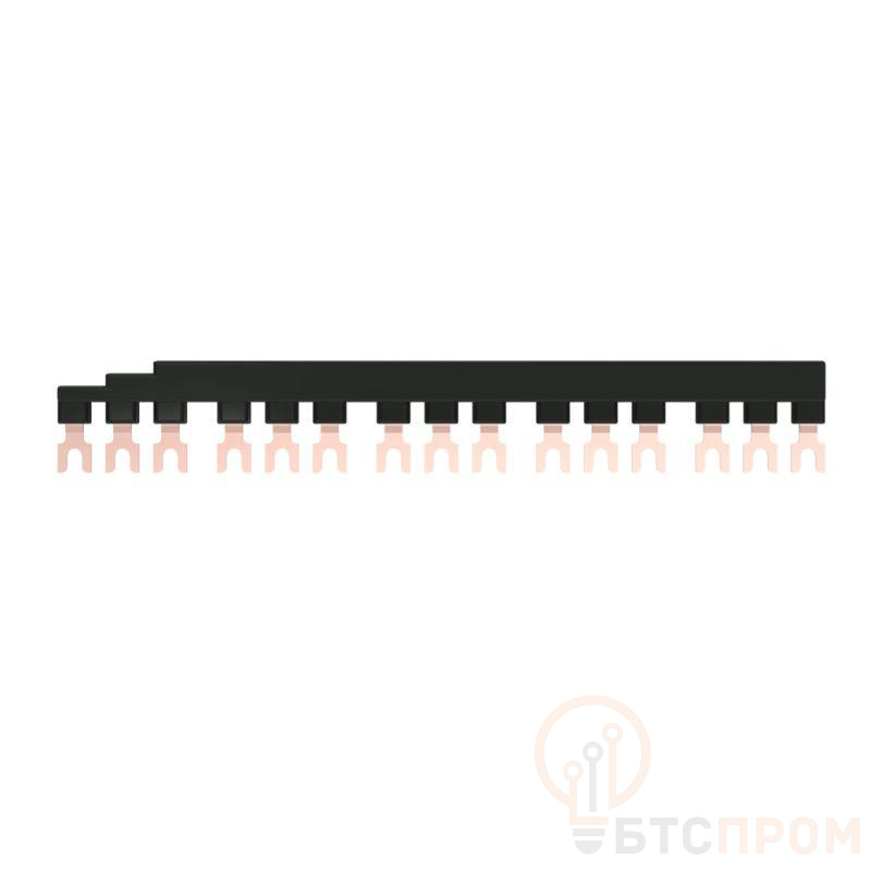 Комплект трехполюсных шин для автоматических выключателей серии SystemePact GM2, на номинальный ток до 63А, исполнение – 5 модулей по 45 мм, монтаж – сверху выключателей. Шины предназначены для правильного и надежного подключения к источнику питания нескольких автоматических выключателей, установленных на одну DIN-рейку.
