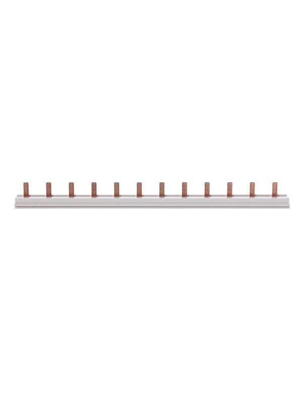 Разводка предназначена для коммутации автоматических выключателей серии S201.изделие быстро монтируется и демонтируется. Позволяет в оперативный сроки надежно собрать и электрощит. Обеспечивает надежный контакт к площадке в клемме автоматического выключателя. Однофазная шинная разводка рассчитана на 12 модулей. Комплектуется торцевой заглушкой PS-END 0. Расстояние между штырьками составляет 17,6мм. Изделие изготовлено из качественной электротехнической меди. В качестве изолятора использован термостокий, ударопрочный пластик, устойчивый к различным внешним воздействиям. Сечение присоединяемой шины — 10/16мм. кв. Максимальный ток — 63А. Максимальное рабочее напряжение составляет 440В, номинальное выдерживаемое импульсное напряжение — 4кВ. Максимально допустимый ток короткого замыкания — 26кА. Продукция этой торговой марки отличается надежностью, высоким качеством, соответствием требованиям стандартов и безопасностью в эксплуатации.