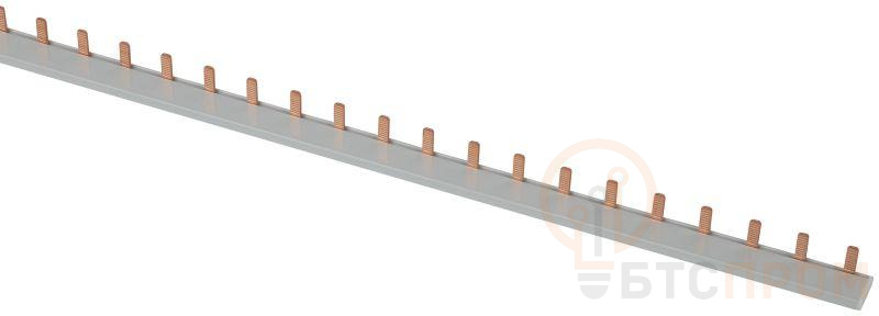 Шины соединительные "Гребёнки" представляют собой токоведущие пластины, выполненные из меди, закрепленные в корпусе из диэлектрического материала. Применяются при внутрищитовом монтаже для подачи питания определённых полюсов и фаз к модульным аппаратам защиты сети (автоматические выключатели, диф. автоматы, ВДТ/УЗО, выключатели нагрузки) путём их параллельного соединения. Шины с шагом 18 мм предназначены для коммутации аппаратов шириной, кратной одному модулю. Являются альтернативой перемычкам из провода и позволяют: - сократить количество проводников в щитке до минимума, - сэкономить пространство и без особых усилий размещать новые элементы, - обеспечить более стабильное и долговечное соединение за счёт цельной токоведущей части и индивидуального подключения каждого устройства к шине только через один проводник (контакт шины). При обрезке шины до требуемого размера обязательно применение торцевых заглушек. Параметры: - Тип электрического подключения: Штырь (PIN) - Количество фаз: 1 - Количество модулей: 54 - Размер шага: 17,8 мм - Поперечное сечение: 10 мм2 - Iu = 63 А (50°С) - Ue = 230 В - Длина: 1000 мм Особенности конструкции: - На корпусе изделия лазерной гравировкой нанесены технические характеристики. - Токоведущая часть изготовлена из электротехнической меди марки М1. - На контактных частях шины выполнены насечки, которые обеспечивают надёжную фиксацию в корпусе модульного аппарата. - Материал изолированного корпуса не поддерживает горение.