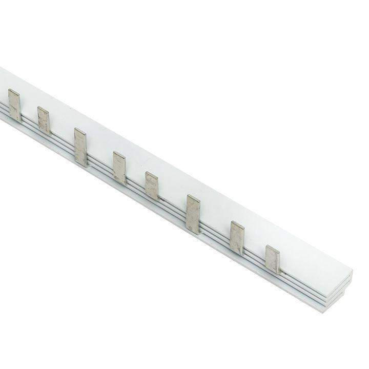 Шины соединительные представляют собой пластины, выполненные из меди (шины на 100 А – из луженой меди), закрепленные в корпусе из диэлектрического материала, не поддерживающего горение, и выпускаются стандартной длиной 1 метр. Шины соединительные делятся на два типа - FORK («вилка») и PIN («гребенка») на номинальные токи 63 и 100 А. Могут быть выполнены в одно- двух- трех- и четырехполюсном исполнений.