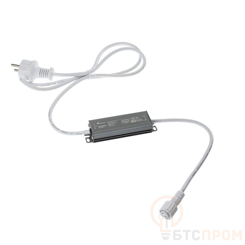 Блок питания 230 В – 24 В предназначен для подключения светодиодных гирлянд Нить, требующих постоянного напряжения 24 В. Мощность блока питания составляет 40 Вт. Блок питания позволяет подключить до 50 метров гирлянд.