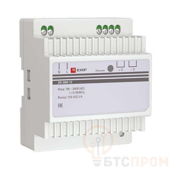 Блоки питания серии DR напряжениями 5/12/24/48 В, EKF устанавливаются на DIN рейку и предназначены для преобразования входного переменного напряжения 100-240 В в постоянное стабилизированное напряжение 5,12,24 или 48 Вольт.