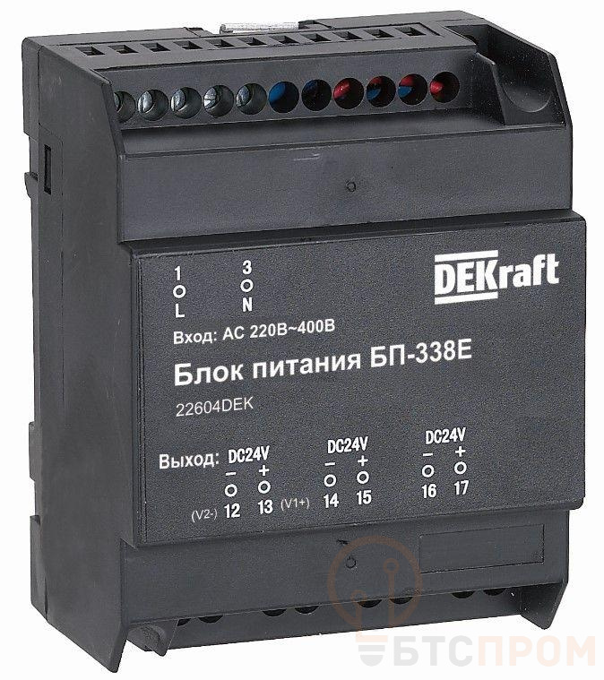 Блок питания БП-330Е Dekraft; входное напряжение 230 В AC; выходное напряжение 24 В DC; ном. мощность 7 Вт; может быть установлен на DIN-рейку 35мм. Блок питания БП-228Е обеспечивает вспомогательное питание электронного расцепителя ВА-338Е на токи от 1000А до 1600А в цепях 220В~400В переменного тока, на основные защитные функции отсутствие блока питания не влияет.