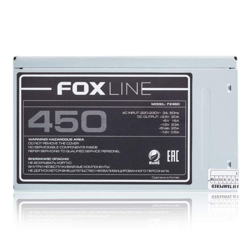 –Блок питания FZ450 Power Supply 450Вт ATX NOPFC 80FAN 2xSATA 2xPATA 1xFDD 24+4 Foxline 1000592580